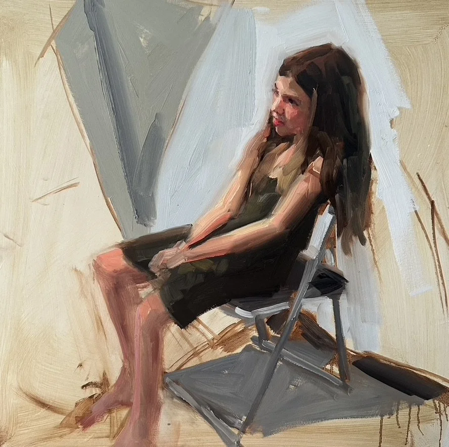 Yvette Hartog–van Dijk · Model zitten in het atelier, Olieverf op paneel, 60 × 60 cm