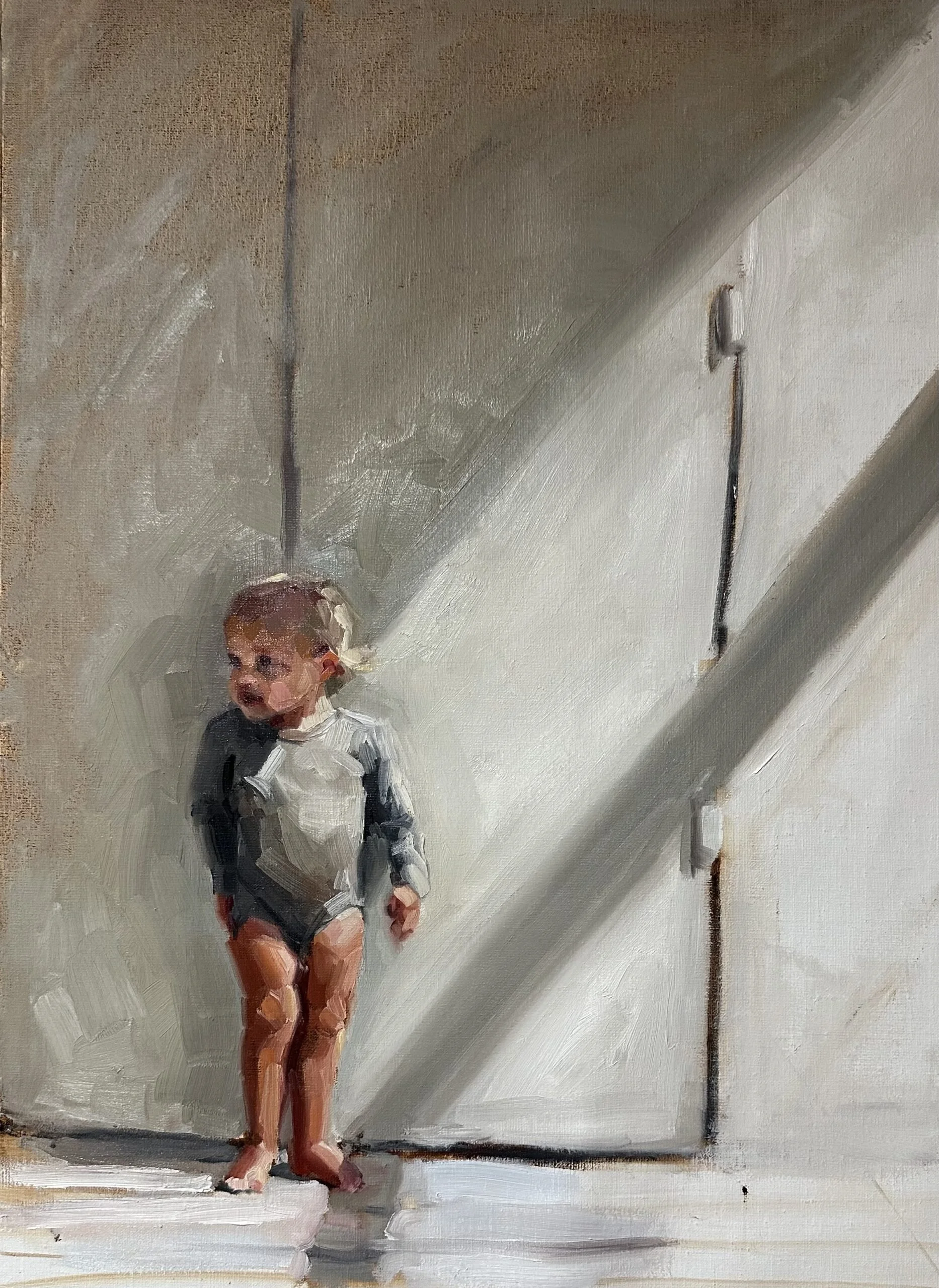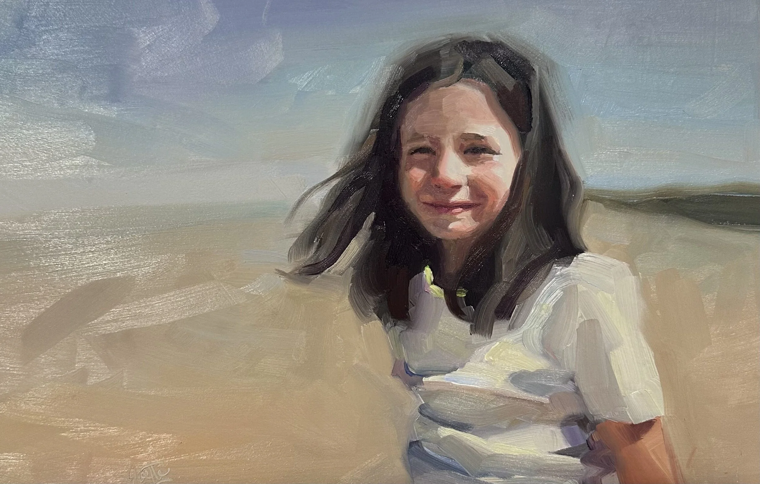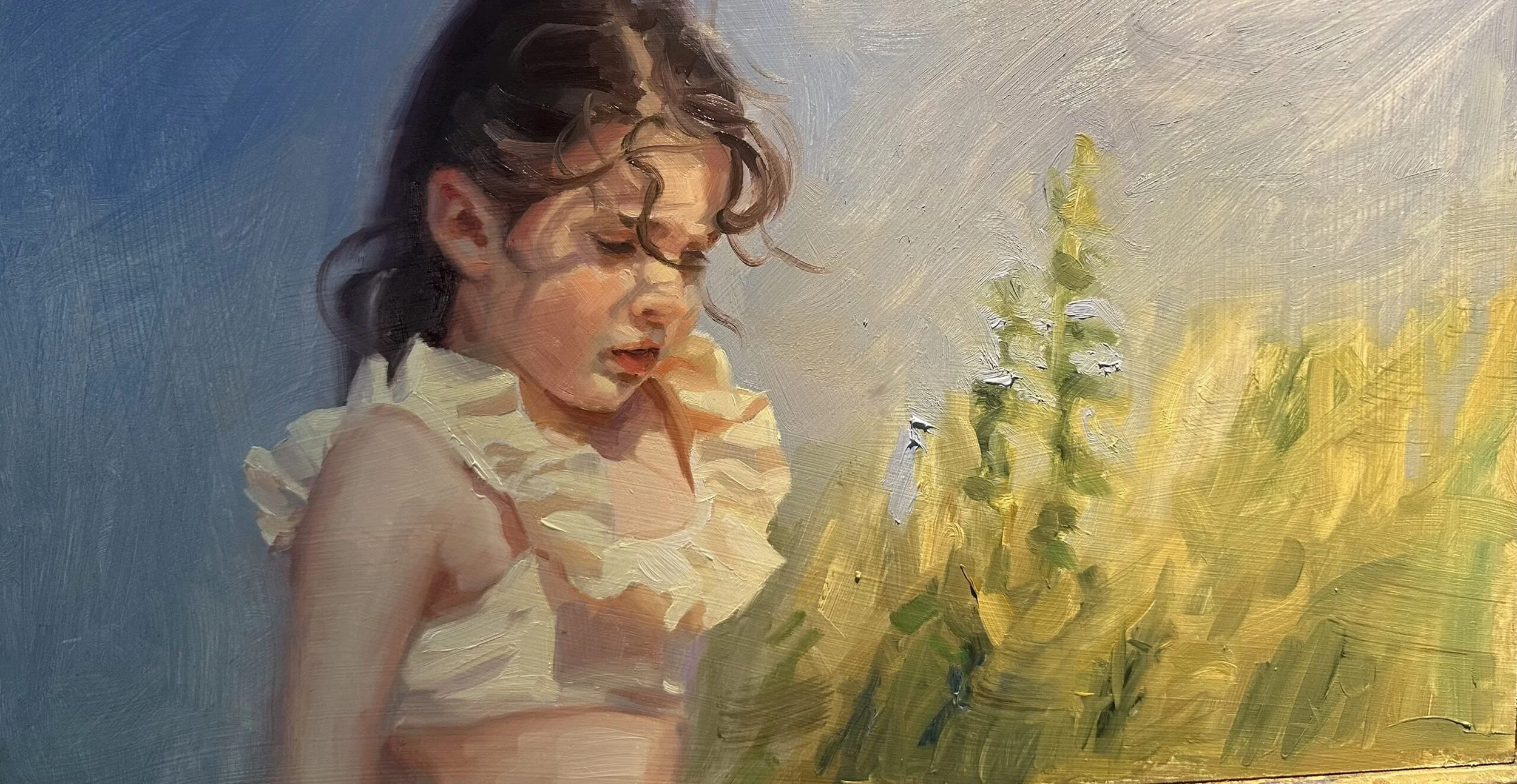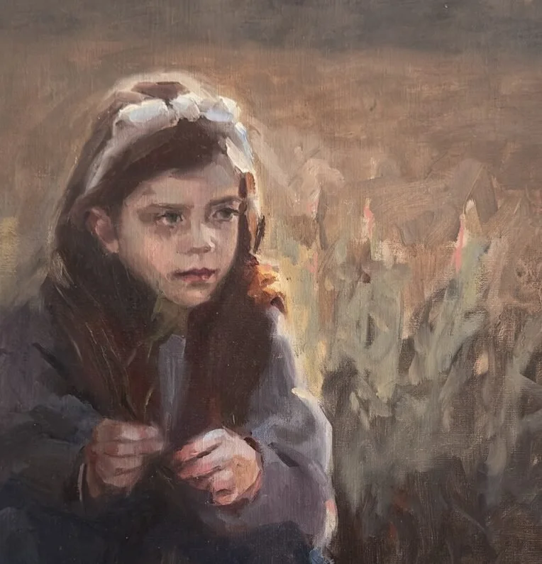 Yvette Hartog–van Dijk · Meisje in het veld, Olieverf op maroufle, 50 × 50 cm