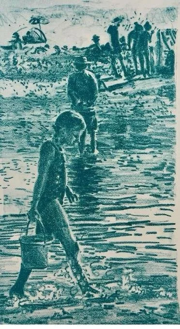 Charlot van der Hoeven · Dagje strand, Lithografie, 26 × 15 cm