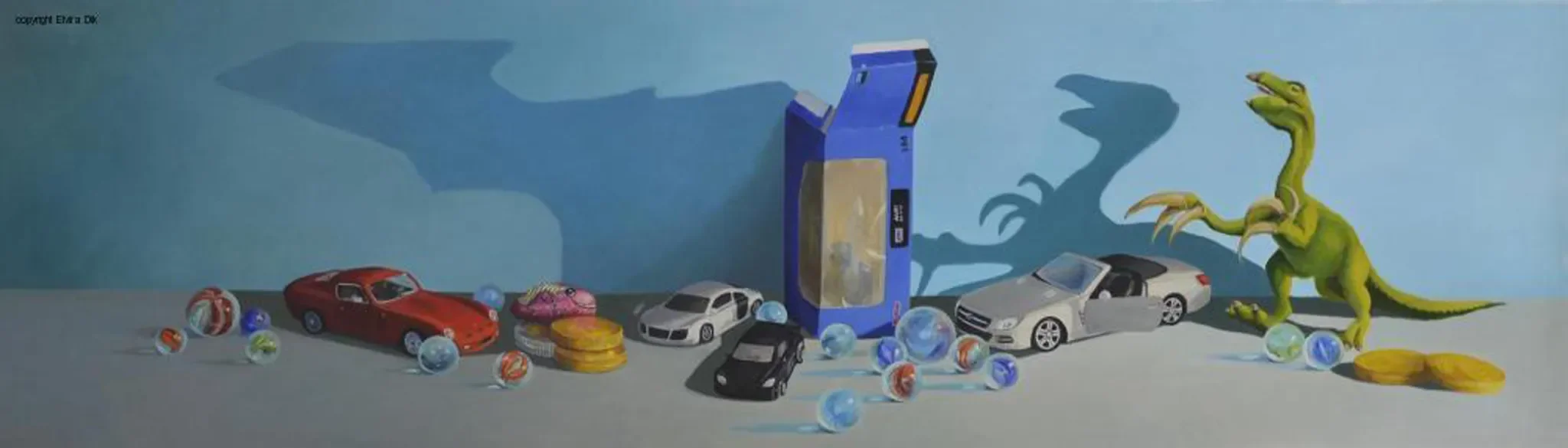 Elvira Dik · Boys will be boys, Olie op doek, 50 × 180 cm