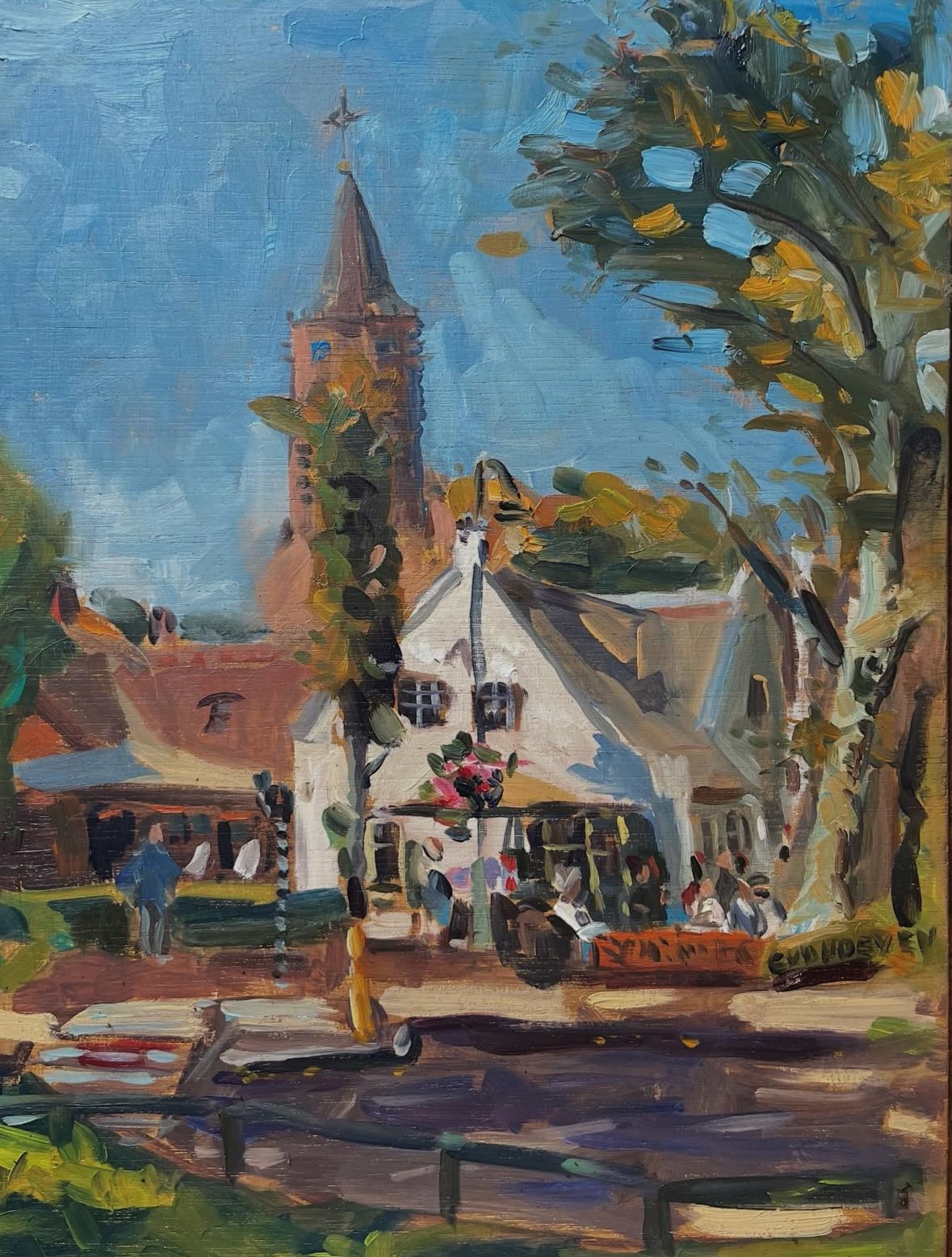 Sacha van Aarde · Het Bonte Paard in kerstsfeer, olieverf op paneel, 38 × 46,5 cm, €695
